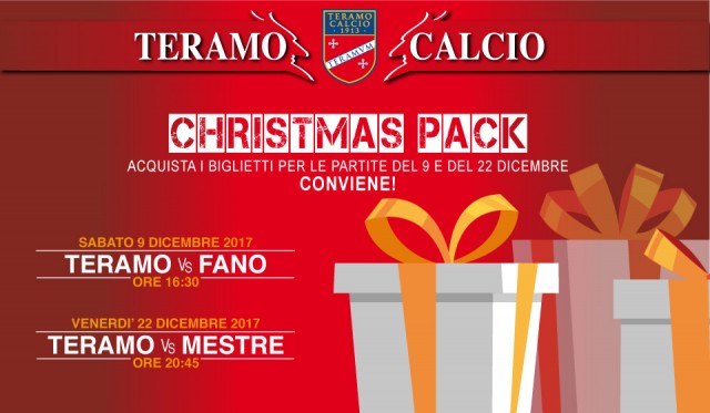 Osservato il programmato riposo di campionato, il Teramo si è tuffato a capofitto per preparare la sfida di campionato in programma sabato alle 16.30 contro il Fano (arbitro Fontani di Siena). Oggi pomeriggio altra seduta di allenamento. Asta spera di recuperare Amadio; difficile, invece, che Fratangelo possa farcela. La società, intanto, ha lanciato il “Christmas Pack”, cioè la possibilità di acquistare a prezzo agevolato un biglietto unico per le gare casalinghe contro Fano e Mestre (22 dicembre alle 20,45). I prezzi: Tribuna 30 euro (ridotto 20); Distinti 17 euro (13 ridotto) e Curva locale 15 euro (11 ridotto). Non rientra nella promozione il settore Poltronissima il cui costo del tagliando resta di 35 euro per ogni gara.