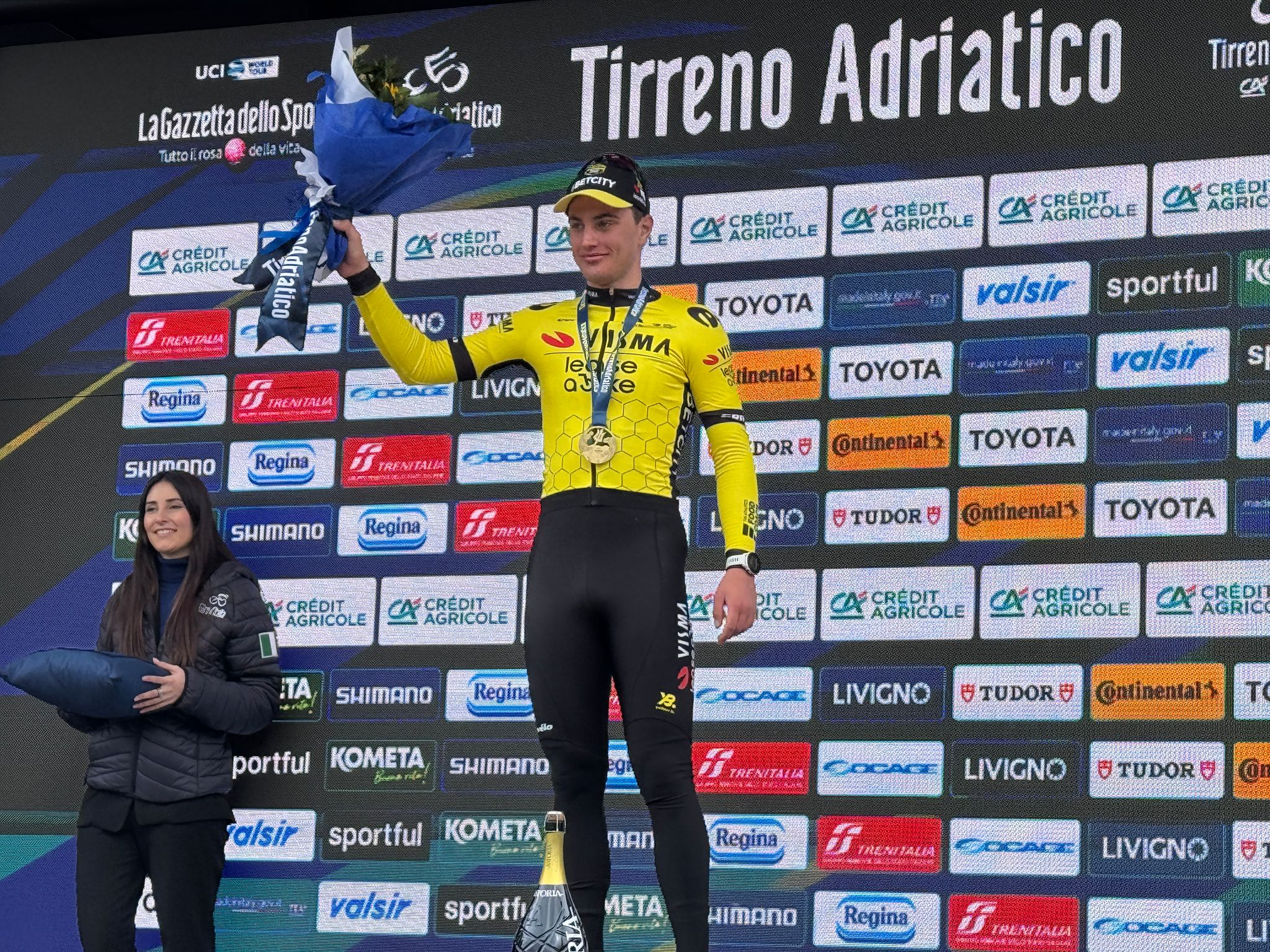 Quarta tappa spettacolare alla Tirreno-Adriatico 2025. I 190 chilometri fino a Trasacco hanno visto diversi cambi di scenari, dovuti anche al maltempo ed al vento. Alla fine nella volata ristretta l’ha spuntata Olav Kooij (Team Visma | Lease a Bike). Trentanovesima vittoria in carriera per il neerlandese che si era imposto anche in uno sprint al Giro l’anno scorso. Filippo Ganna resta leader della classifica generale.
