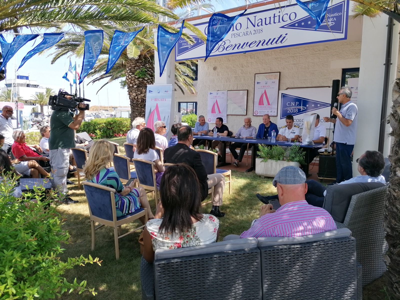 A presentare la manifestazione nello spazio verde della Club House del Cnp 2018 sono stati Andrea Mori, delegato del Circolo nautico, il presidente del Circolo Nino Venditti, il presidente del Consorzio Tutela Vini d’Abruzzo Valentino Di Campli, il delegato della IX Zona Fiv Abruzzo e Molise Giancarlo Casuscelli, il presidente del Consiglio regionale Lorenzo Sospiri, il direttore del Marina di Pescara Bruno Santori, il comandante in seconda della Guardia Costiera Marcello Notaro.