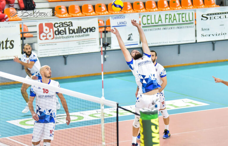Sieco Ortona incerottata e senza diverse pedine fondamentali (ai già assenti Shavrak, Del Frà e Sette, si sono aggiunte anche le defezioni di Menicali e Cantagalli), ma comunque vincente per la quinta volta consecutiva. I ragazzi di Nunzio Lanci non finiscono di stupire , imponendosi al tie-break in casa del Taranto, squadra costruita per vincere il campionato. I parziali: 25-17; 25-27; 28-26; 19-25; 15-17 in due ore e mezza di gioco. Domenica prossima turno interno contro Lagonegro con l’obiettivo di consolidare il primato.