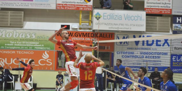 Sieco Ortona costretta ad incassare il secondo 3-0 consecutivo sul parquet del Grottazzolina. I parziali: 25/16 – 25/17 – 25/19 in un’ora e 12 minuti di gioco. Come se non bastasse, la Sieco perde Ludovico Dolfo proprio ad inizio gara. Problemi ad una caviglia per lui, cadendo male da un muro. Muro che ha funzionato poco a Grottazzolina. Menicali aveva illuso un po’ tutti proprio con questo fondamentale nelle prime battute di gioco, ma poi gli attacchi avversari hanno incontrato sempre meno resistenza. In serata no anche le bocche da fuoco ortonesi. Dopo la sconfitta in terra marchigiana la Sieco dovrà provare il tutto per tutto domenica nella seconda trasferta consecutiva a Taviano.