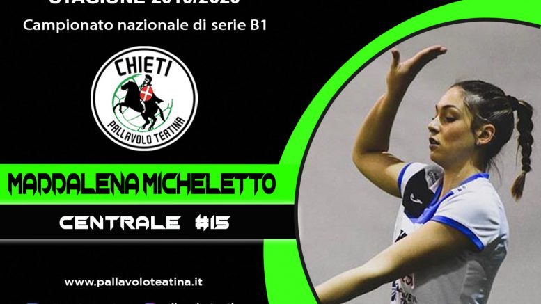 Pallavolo Teatina, ultimi ritocchi alla squadra che affronterà il prossimo campionato di serie B1, girone D. Presa la centrale Maddalena Micheletto.