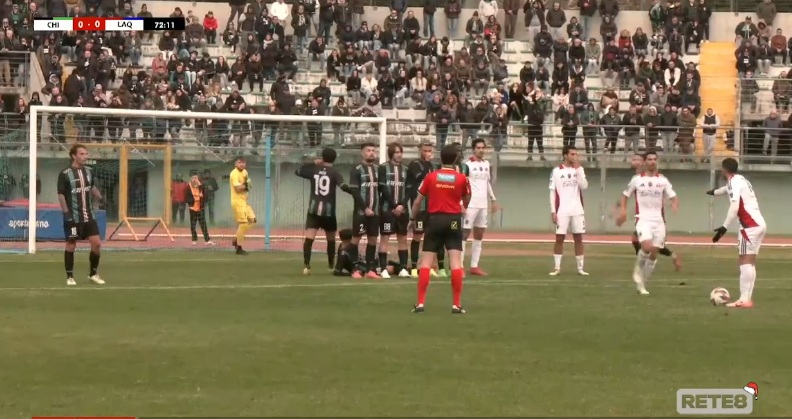 Rossoblù in campo contro il Chieti, gara in diretta su Rete 8. Sul fronte della prevendita, ieri sera al termine erano 300 i tagliandi venduti per i supporters aquilani. Derby di altissima quota tra Chieti e L’Aquila, due delle grandi protagoniste del Girone F. Obiettivo comune la voglia di continuare ad inseguire la Sambenedettese. Giovanni Alessandretti all’89’ porta in vantaggio L’Aquila. Abile a sfruttare una grave disattenzione della difesa neroverde.
