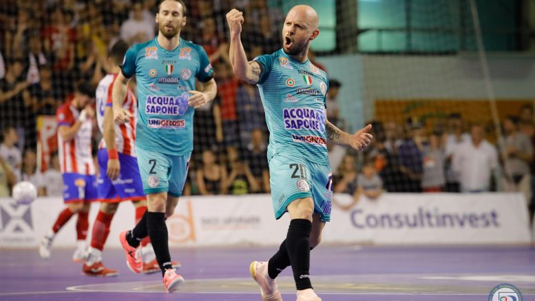 L’Acqua&Sapone vince 4-2 a Pesaro gara 4 della finale scudetto, portando la serie sul 2-2. Partita quasi perfetta dei ragazzi di Perez che dopo un primo tempo equilibrato (1-1), dilagano nella ripresa con tre reti. Grande festa per i quasi 200 tifosi arrivato dall’ Abruzzo. Ora lo scudetto si deciderà al Palaroma di Montesilvano. Partita in programma domenica 16 giugno alle 20,30.