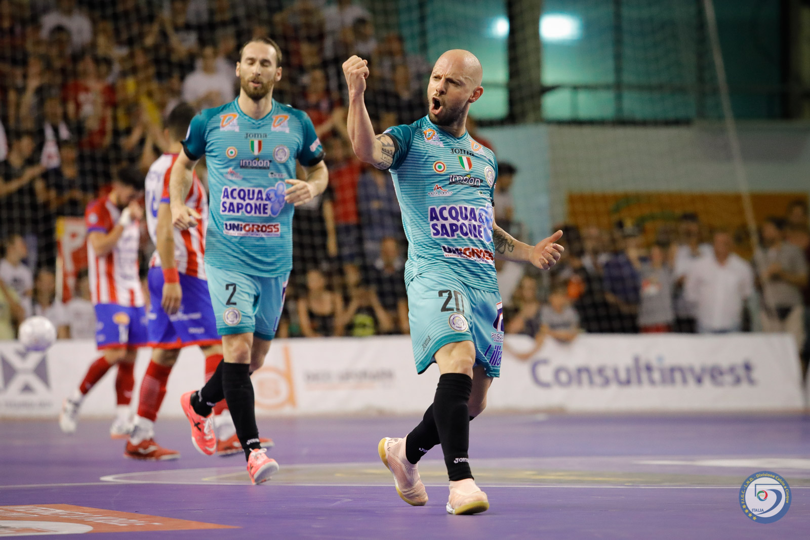 L’Acqua&Sapone vince 4-2 a Pesaro gara 4 della finale scudetto, portando la serie sul 2-2. Partita quasi perfetta dei ragazzi di Perez che dopo un primo tempo equilibrato (1-1), dilagano nella ripresa con tre reti. Grande festa per i quasi 200 tifosi arrivato dall’ Abruzzo. Ora lo scudetto si deciderà al Palaroma di Montesilvano. Partita in programma domenica 16 giugno alle 20,30.