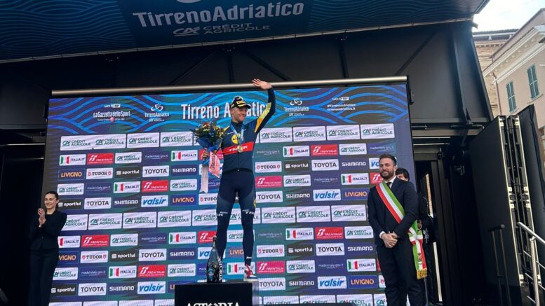 Colpo doppio per Jonathan Milan alla Tirreno-Adriatico. Il corridore della Lidl-Trek si aggiudica in volata la quarta tappa, 207 chilometri fra Arrone e Giulianova e si prende anche la maglia azzurra di leader della classifica generale. Il friulano beffa sul traguardo Jasper Philipsen (Alpecin-Deceuninck) e Corbin John Strong (Israel-Premier Tech) e si prende finalmente il gradino più alto del podio dopo il terzo posto nella crono di apertura e la seconda piazza di ieri alle spalle di Phil Bauhaus.