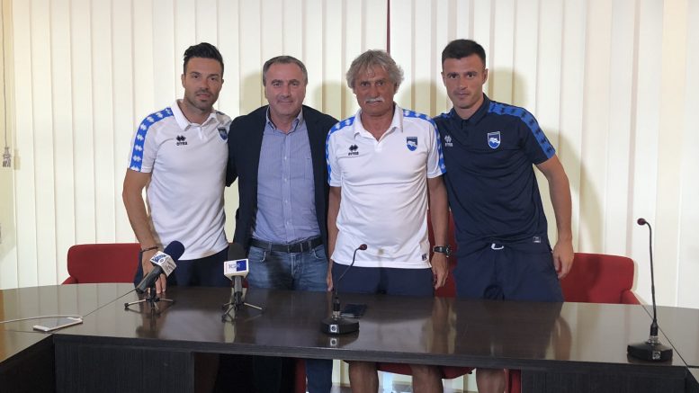 “ Il presidente ha parlato di play off e di stagione del rilancio? Ha ragione. Squadra costruita bene. Manca qualche tassello ma ci siamo. Il modulo è il 4-3-3 e sono contento dei ragazzi che sono arrivati. Non prometto mai io ma voglio vedere una squadra con il sangue agli occhi e che in campo deve dare tutto. Dove arriveremo lo dirà il tempo. Cosa manca? Appena arriva Antonucci credo che la squadra sia competitiva. Memushaj? Lo conosco e lo ho richiesto. Voglio gente come lui. Saremo 24-25 tutti titolari. Il bomber da 20 gol? Con Monachello, Cocco e Bunino siamo a posto così. E su Cocco vi dico che lo sto vedendo benissimo. Monachello lo scorso anno ha fatto benissimo e ci darà una grossa mano al pari di Bunino. Se qualcuno chiederà di andare via non lo teniamo con la forza. Zampano? Giocatore importante spero possa restare. Rispetto allo scorso anno dobbiamo essere più incisivi sulle palle inattive. Elizalde? Farà il terzino. Anche Balzano può giocare a sinistra. Ho 62 anni ma chiariamo che non mi sento vecchio per niente e voglio tornare in A. Magari subito con il Pescara. Marras? Sarà una scommessa. Lo conosco ma voglio vederlo in B. Il pubblico? Sta a noi. Lo scorso anno abbiamo giocato bene, ci abbiamo messo il cuore e i nostri tifosi hanno apprezzato. Il campionato sarà molto competitivo. Guardate i nomi delle neo promosse saranno tutte propositive. Campagnaro? Potrà darci una grossa mano. Come calciatore e come persona
