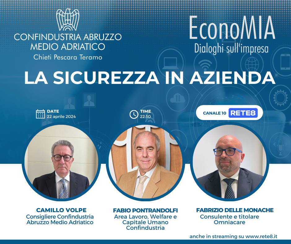 Lunedì 22 aprile, torna l’appuntamento con “EconoMIA, dialoghi sull’impresa”, il format tv di Confindustria Abruzzo Medio Adriatico e Rete8