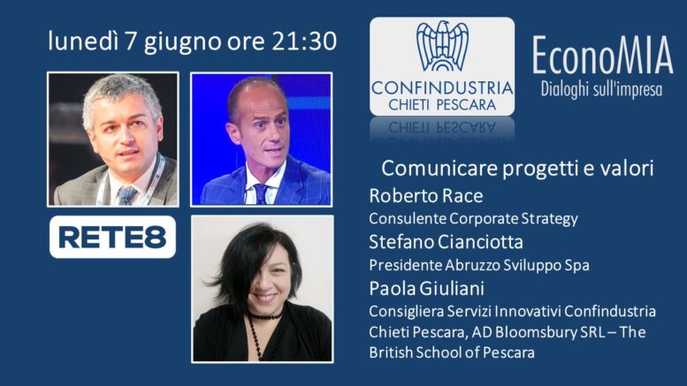 Come è cambiata la comunicazione delle imprese in tempi di #Covid? Parleremo anche di economia della complessità, narrazione d’impresa e reputazione. La testimonianza di imprenditori ed esperti ospiti di Confindustria Chieti – Pescara stasera alle 21:30 per “EconoMIA, dialoghi sull’impresa” su Rete 8.