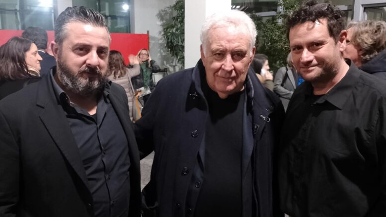 (Nella foto un “dietro le quinte” di Santoro in compagnia di Carmine Di Cecco e Galvano Coppa della Troupe di Rete8)