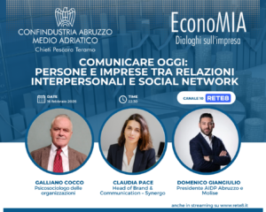Alle ore 22:30 c’è EconoMIA, un programma curato da Confindustria Abruzzo Medio – Adriatico. Tema della puntata: “Comunicare oggi: persone e imprese tra relazioni interpersonali e social network”.