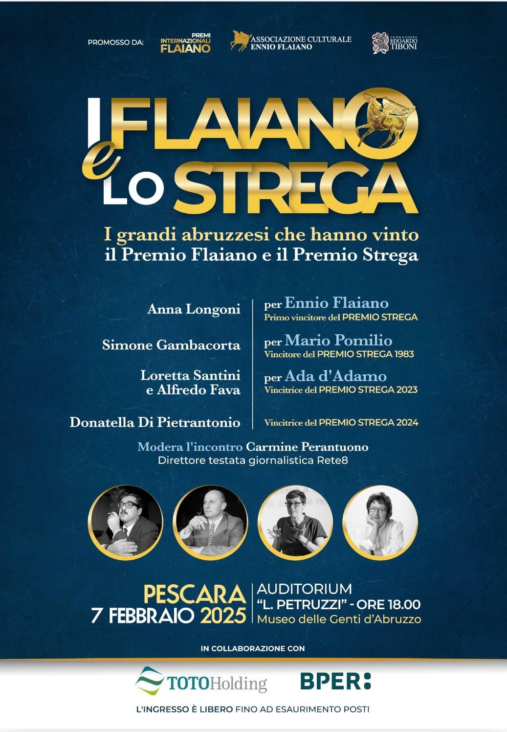 Alle 20.30, ancora il capoluogo di regione protagonista con una nuova puntata di “L’Aquila al Centro” a cura del giornalista Giustino Parisse, mentre alle 21.00 talenti canori d’Abruzzo nel nuovo appuntamento di “Dreams” condotto da Federica Peluffo e la direzione artistica di Piero Mazzocchetti. Alle 22.30 la rubrica del direttore di Rete 8 Carmine Perantuono “I Fatti e le Opinioni” sarà dedicata all’evento promosso dall’Associazione Culturale “Ennio Flaiano” e dai Premi Internazionali Flaiano, in collaborazione con la Fondazione “Edoardo Tiboni”, dal titolo “Il Flaiano e lo Strega”, a confronto i grandi autori abruzzesi che si sono aggiudicati il prestigioso premio letterario, da Ennio Flaiano a Mario Pomilio, da Ada D’Adamo a Donatella Di Pietrantonio, presente all’incontro. Tra gli interventi quelli di Anna Longoni, Simone Gambacorta, Loretta Santini e Alfredo Favi.