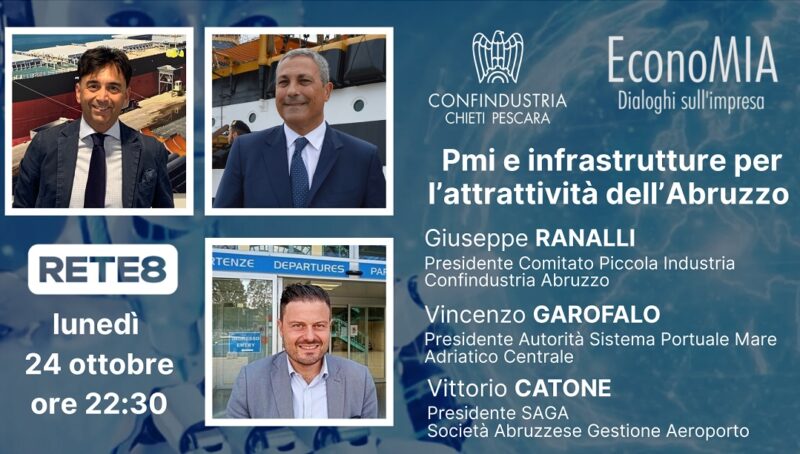 Lunedì 24 ottobre alle ore 22:30 nuova puntata di “EconoMIA, dialoghi sull’impresa”, format tv di Confindustria Chieti Pescara e Rete8