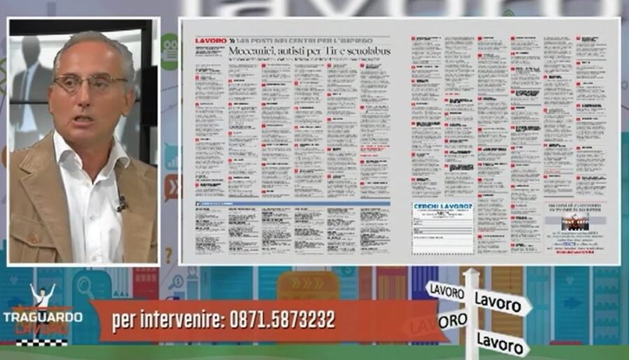 In anteprima le pagine dell’Inserto Lavoro che esce di martedì sul quotidiano il Centro, infine i principali concorsi pubblici in atto con le relative scadenze. Chi cerca lavoro può inviare il videocurriculum (max 1’) a traguardolavoro@rete8.it con le proprie competenze e aspirazioni. Si può anche telefonare e intervenire in diretta al telefono 0871.5873230.