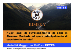Questa sera alle ore 20:00 su Rete8 torna Kimera, il format dedicato al mondo animale. La puntata verte su un tema che sta scuotendo l’Abruzzo: i nuovi casi di avvelenamento di cani in diverse zone del territorio regionale. Un fenomeno inquietante e in crescita, che solleva interrogativi urgenti sulla sicurezza degli animali e sull’efficacia dei controlli.