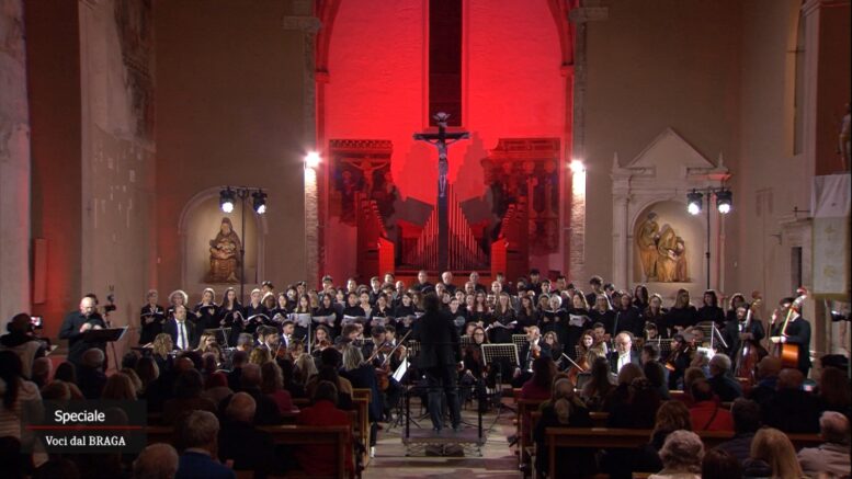 Tornando al Concerto di Teramo: intitolato “Braga per la Resurrezione”, si è tenuto lunedì 28 aprile 2025 alle ore 20.30 presso la suggestiva Chiesa di San Domenico gremita per l’occasione. L’evento, inizialmente concepito come concerto di chiusura del tradizionale ciclo pasquale, ha assunto un valore ancor più profondo e raccolto, ponendosi come omaggio musicale in memoria del Santo Padre recentemente scomparso. Nel raccoglimento e nel silenzio che accompagna questo momento di lutto, la musica di Mozart si fa preghiera universale, gesto di condivisione e riflessione collettiva.