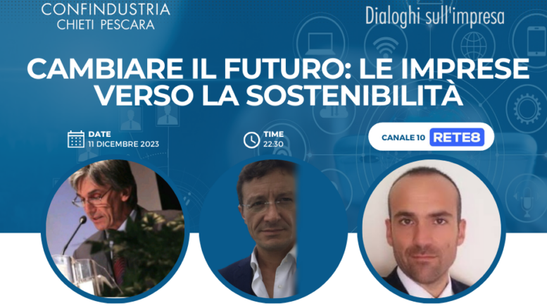 Appuntamento lunedì 11 dicembre 2023 ore 22:30 al canale 10 del digitale terrestre con “EconoMIA, dialoghi sull’impresa”, format tv di CONFINDUSTRIA CHIETI PESCARA e RETE8 con la nona puntata della IV stagione, dal titolo: “Cambiare il futuro: le imprese verso la sostenibilità”.