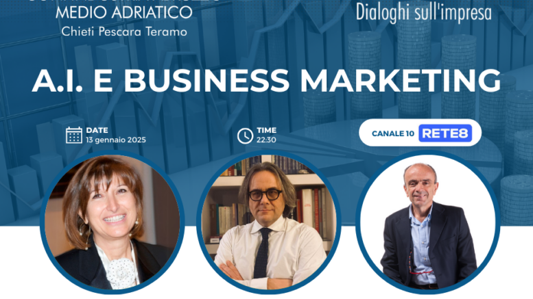 Alle 22.30 Gigliola Edmondo parlerà di economia e impresa nella rubrica “EconoMia: dialoghi sull’impresa” realizzata in collaborazione con Confindustria Abruzzo Medio Adriatico. Con il coordinamento di Laura Federicis, il tema scelto per la puntata di questa sera “Intelligenza artificiale e business marketing”. Ospiti Donatella Consolandi, Past President di Confindustria Intellect; Raffaele Crispino, Consigliere dell’Associazione Italiana Sviluppo Marketing e Fabio Di Camillo, Managing Director di Sinergia Advertising Srl.