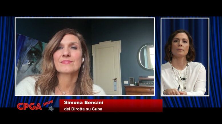 numerosi e interessanti ospiti. A partire dalla cantante dei Dirotta su Cuba, Simona Bencini (nella foto con la giornalista Paola De Simone), in collegamento per presentare il nuovo singolo e raccontare i particolari del trentennale della band.
