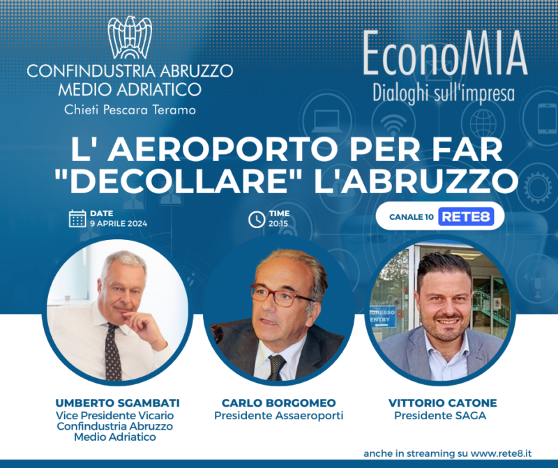 Appuntamento eccezionalmente per questa settimana di martedì alle ore 20:15, con “EconoMIA, dialoghi sull’impresa”, format tv di Confindustria Abruzzo Medio Adriatico e Rete 8