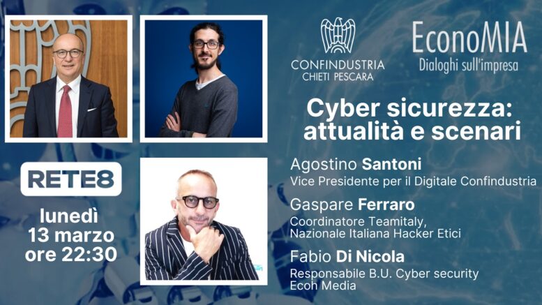 Cyber sicurezza: attualità e scenari. Questo il tema della puntata di #EconoMIA, dialoghi sull’impresa, format tv di Confindustria Chieti Pescara e Rete8, che andrà in onda lunedì 13 marzo 2023 alle ore 22:30