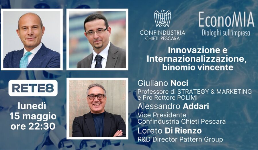 “Innovazione e Internazionalizzazione, binomio vincente”. Questo il tema della puntata di #EconoMIA, dialoghi sull’impresa, format tv di Confindustria Chieti Pescara e Rete8, che andrà in onda lunedì 15 maggio 2023 alle ore 22:30