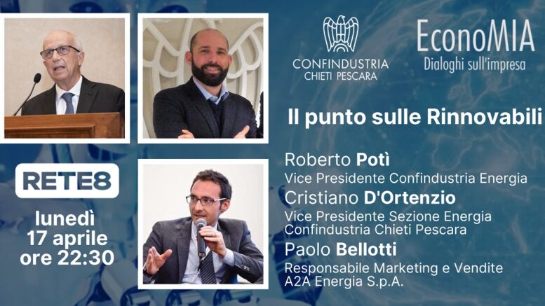 Il punto sulle rinnovabili. Questo il tema della puntata di #EconoMIA, dialoghi sull’impresa, format tv di Confindustria Chieti Pescara e Rete8, in onda lunedì 17 aprile alle ore 22:30